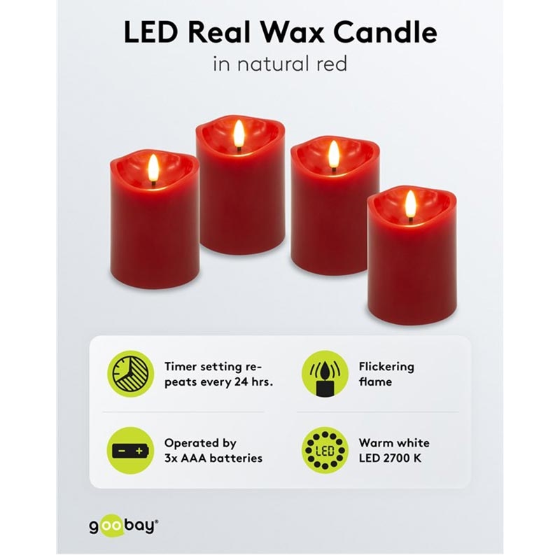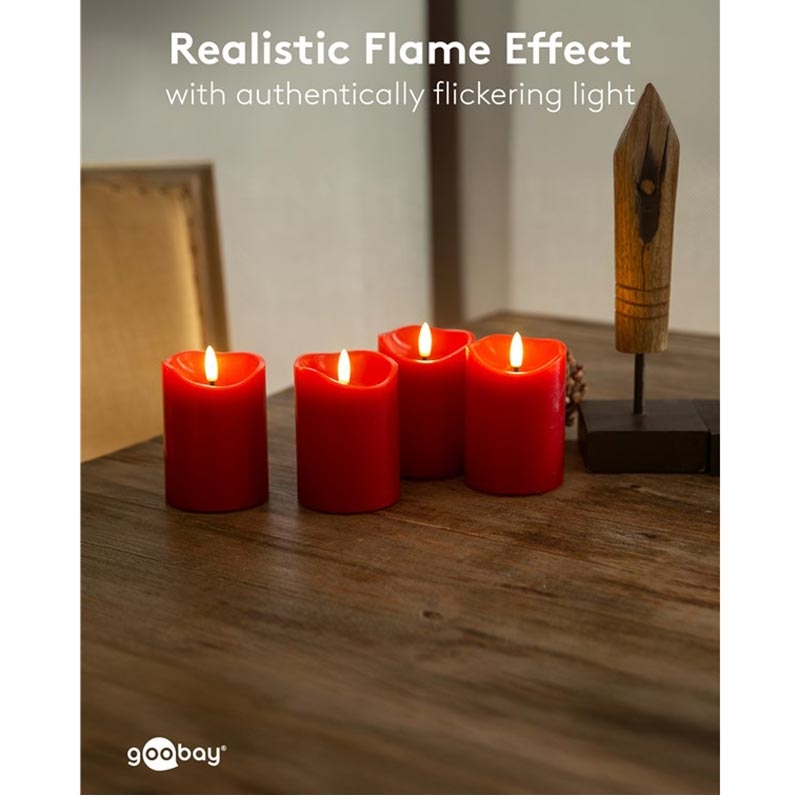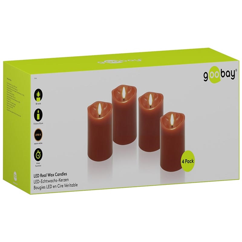 Goobay LED-Echtwachskerzen - 3D-Flamme, Timer-Funktion, warmweiß 2700 K, batteriebetrieben