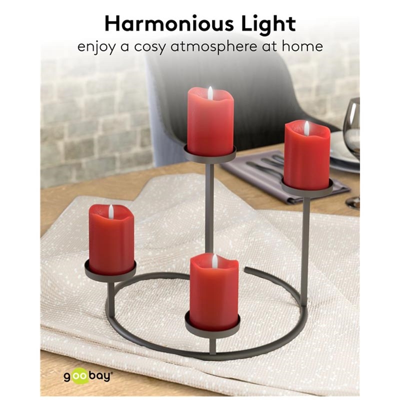 Mit diesem Set aus 4 Goobay LED-Echtwachskerzen verleihen Sie jedem Raum klassischen Kerzenlicht-Charme. Aus echtem Wachs gefertigt und mit 3D-Flammenkegeln ausgestattet, erzeugen sie einen wunderbar realistischen Flackereffekt, der die Wärme traditioneller Kerzen einfängt - ohne Ruß, Hitze oder Brandgefahr. Das warmweiße 2700-K-Glühen sorgt für eine gemütliche Atmosphäre, die sich für das ganze Jahr über eignet, von intimen Abendessen bis zu festlichen Weihnachtsfeiern. Mit einem automatischen 6-Stunden-Timer und Batteriebetrieb bieten diese Kerzen ein müheloses Ambiente überall dort, wo echte Flammen unsicher oder nicht erlaubt sind.