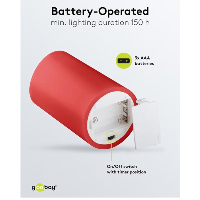 - Batterien: 3× AAA pro Kerze (nicht enthalten)