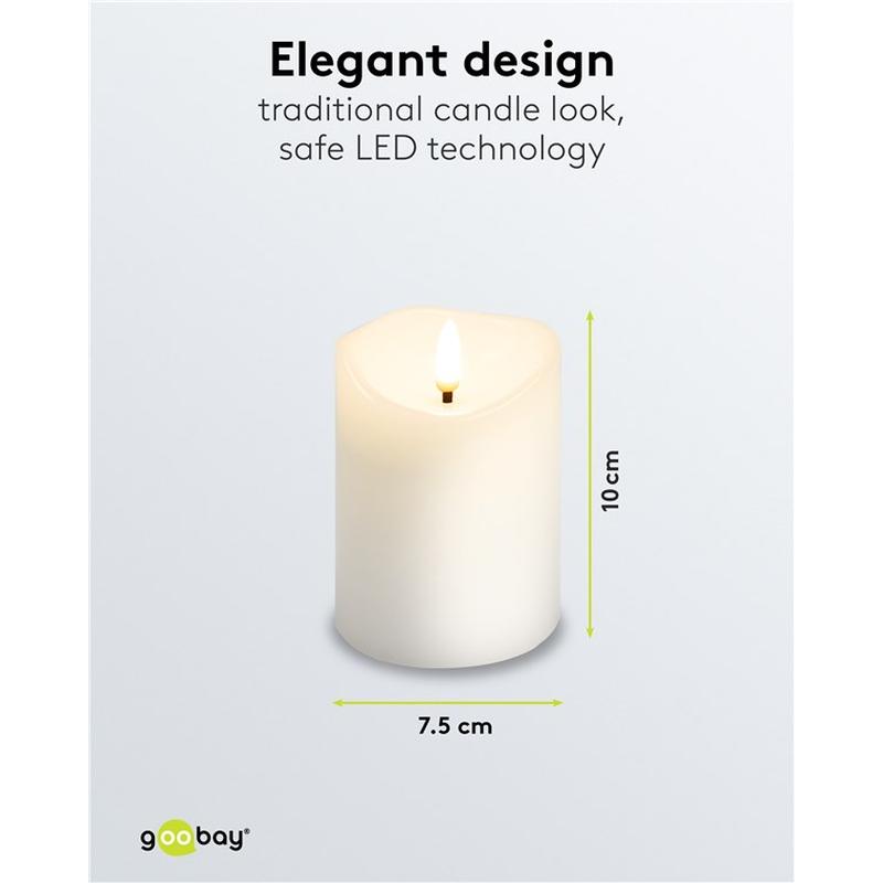 Goobay LED-Echtwachskerzen - 3D-Flamme, Timer-Funktion, warmweiß 2700 K, batteriebetrieben