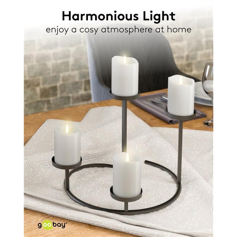 Mit diesem Set aus 4 Goobay LED-Echtwachskerzen verleihen Sie jedem Raum klassischen Kerzenlicht-Charme. Aus echtem Wachs gefertigt und mit 3D-Flammenkegeln ausgestattet, erzeugen sie einen wunderbar realistischen Flackereffekt, der die Wärme traditioneller Kerzen einfängt - ohne Ruß, Hitze oder Brandgefahr. Das warmweiße 2700-K-Glühen sorgt für eine gemütliche Atmosphäre, die sich für das ganze Jahr über eignet, von intimen Abendessen bis zu festlichen Weihnachtsfeiern. Mit einem automatischen 6-Stunden-Timer und Batteriebetrieb bieten diese Kerzen ein müheloses Ambiente überall dort, wo echte Flammen unsicher oder nicht erlaubt sind.
