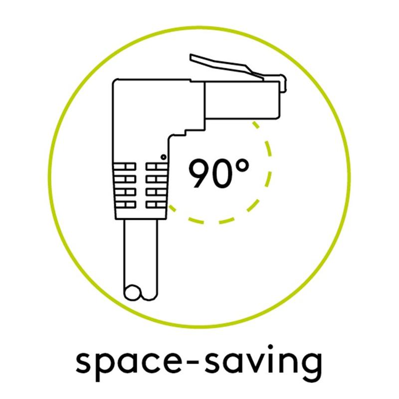 Helgjuten, oskärmad LAN-kabel med 2x RJ45-kontakter för anslutning av nätverkskomponenter , Kabel med 2x 90° rätvinkliga RJ45-kontakter är en idealisk lösning i trånga utrymmen. Högkvalitativ kopparklädd aluminiumledare (CCA) och guldpläterade kontaktytor garanterar en utmärkt, högpresterande nätverksanslutning. Böjskydd och stabilt mantel skyddar Ethernet-kabeln optimalt mot kabelbrott. CAT-5e-kabel utan snäpplåsskydd, Nätverksplugg: parordning enligt EIA/TIA 568B, Nätverkskabeln är lämplig för Gigabit Ethernet med hastigheter på upp till 10/100/1000 Mbit/s.