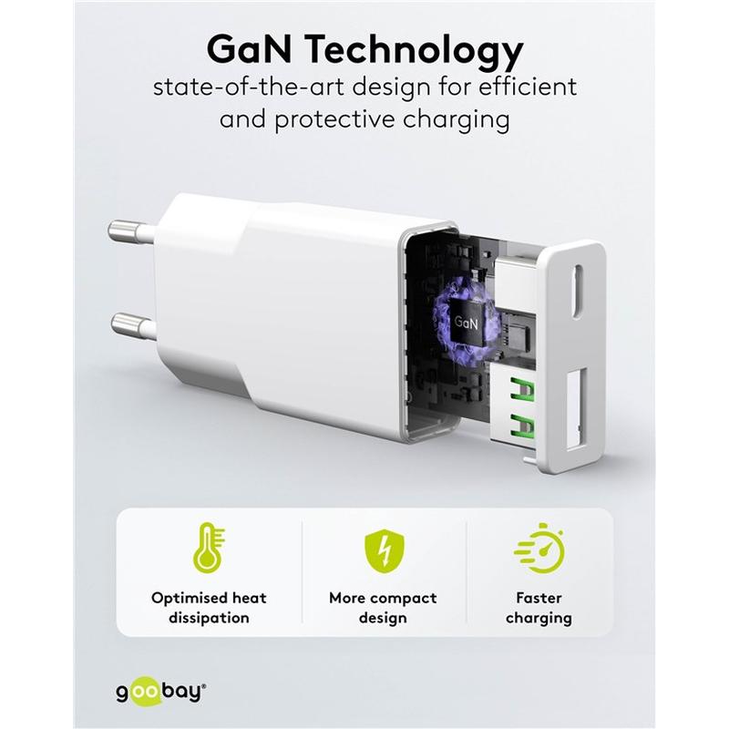 Mit dem Goobay USB-C PD GaN Dual Fast Charger bleiben Sie geladen, effizient und nie ohne Strom. Perfekt für alle, die schnelles, zuverlässiges Laden in einer schlanken, tragbaren Form benötigen.