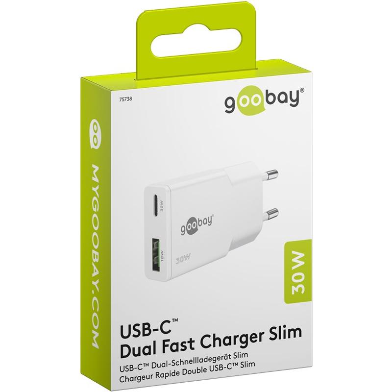 Goobay Slim USB-C PD GaN Duales Schnellladegerät 30W - Schnelles Laden, schlankes Design, ultimative Bequemlichkeit
