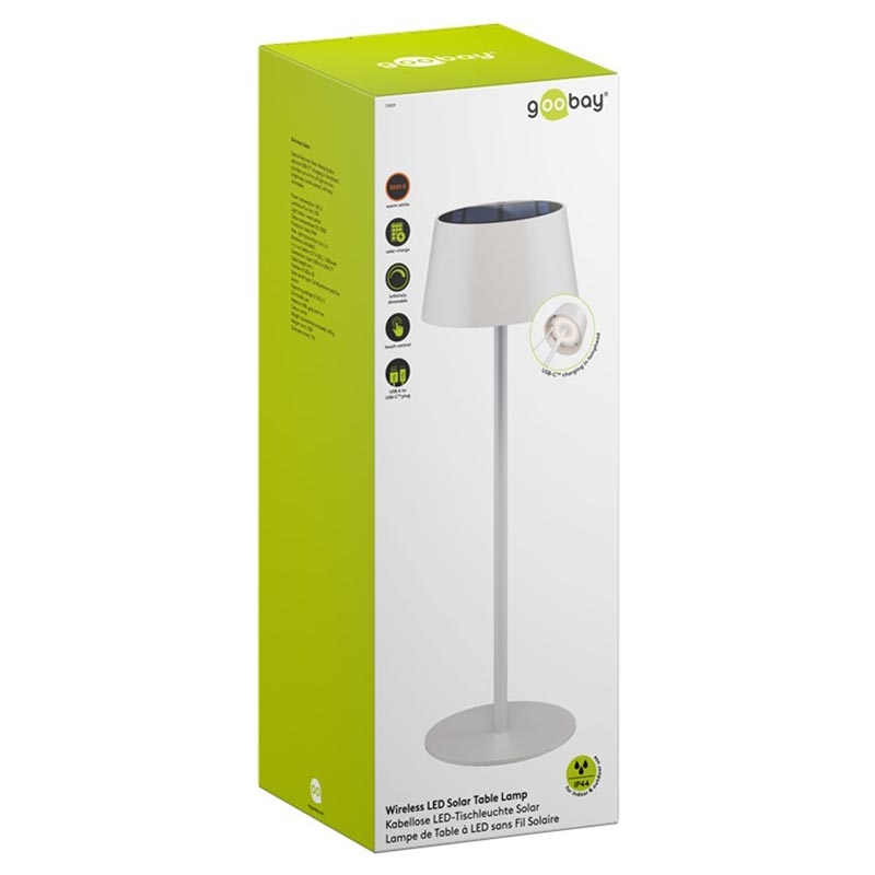 • Goobay Wireless LED-Solartischlampe - Warmweiß 3000 K, 150 lm, Touch-Steuerung, stufenlos dimmbar, Solar- und USB-C-Aufladung, IP44