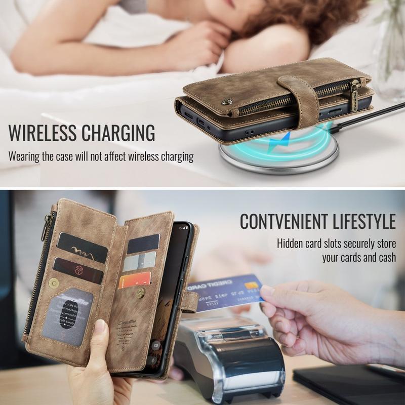 Die Caseme C30 multifunktionale Brieftaschenhülle für das Google Pixel 10, Pixel 10 Pro bietet außergewöhnlichen Rundumschutz und ein exklusives, raffiniertes Design. Diese elegante Hülle besteht aus hochwertigem Polyurethan, verstärkt mit einer stoßfesten TPU-Innenhülle, die sich perfekt an Ihr Google Pixel 10, Pixel 10 Pro anschmiegt. Die Caseme C30 Brieftasche ist mit zahlreichen Kartenfächern, einem großen Geldfach innen und einer Außentasche mit Reißverschluss ausgestattet, die alle durch einen sicheren Magnetverschluss geschützt sind.
