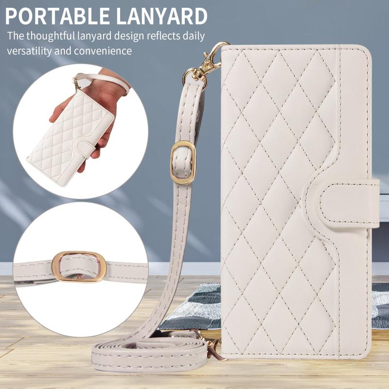 Luxus Gesteppte Wallet Hülle mit Schulter & Handgelenk Strap für Google Pixel 10a - Rhombus-Muster Schutzhülle
