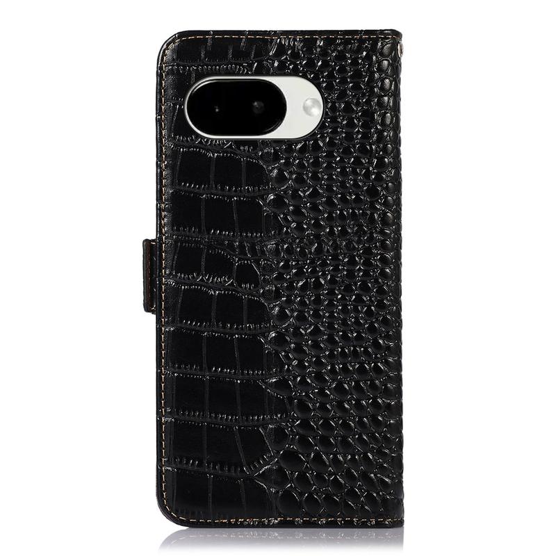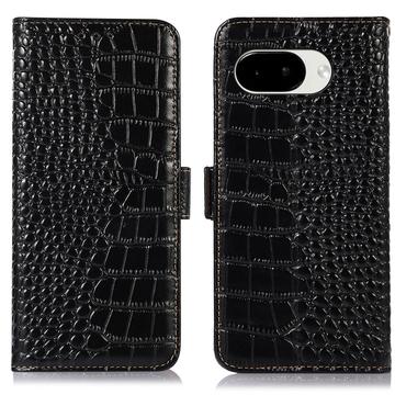 Google Pixel 10a Crocodile Serie Lederhülle mit Geldbörse mit RFID - Schwarz