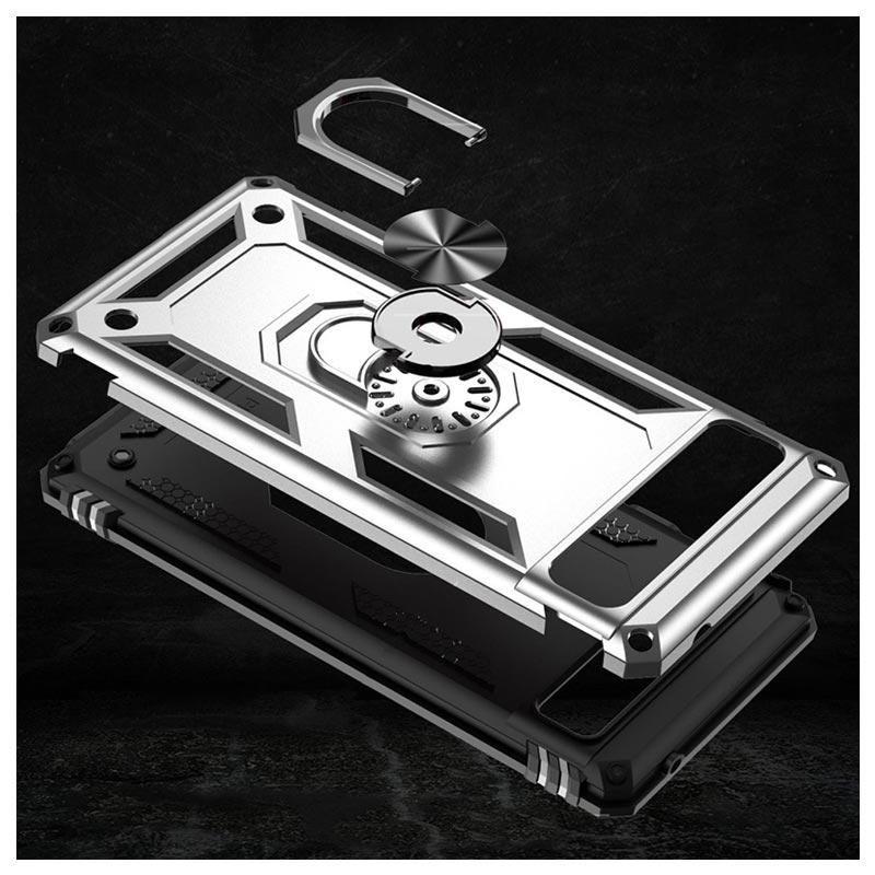 Google Pixel 6a Hybrid Hülle mit Metall Ständer - Silber