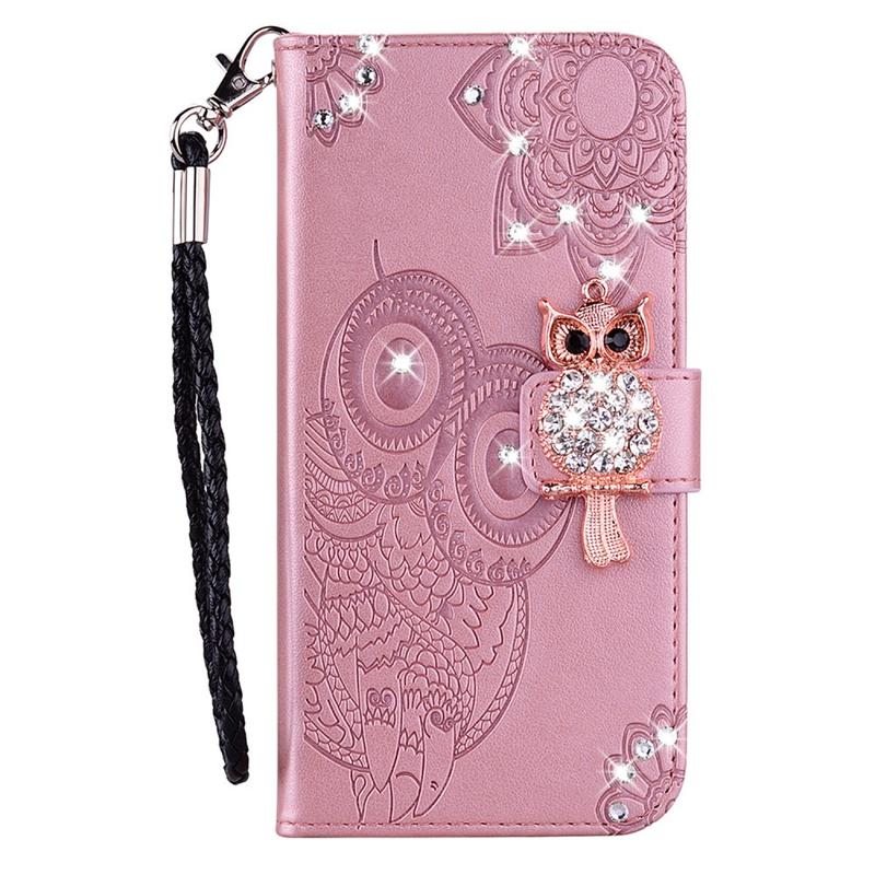 Google Pixel 8 Pro Eule Strass Wallet Hülle - Roségold