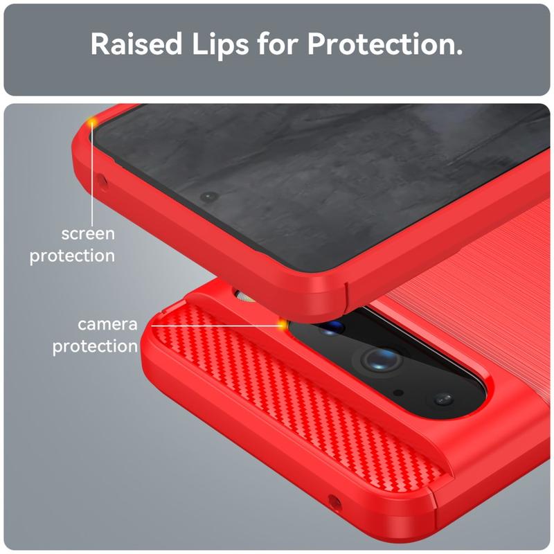 Google Pixel 8 Pro Gebürstete TPU Hülle - Karbonfaser - Rot