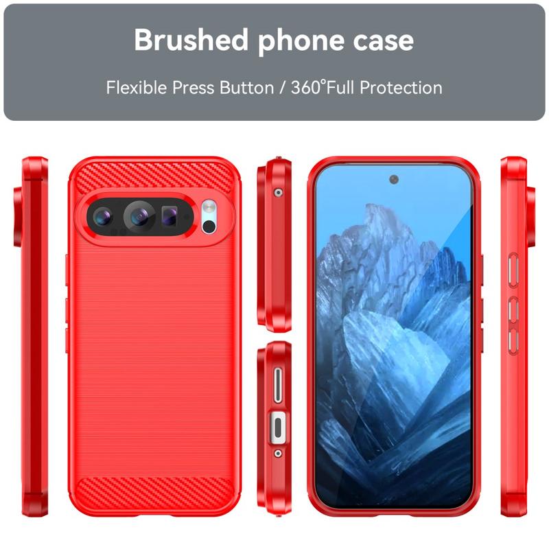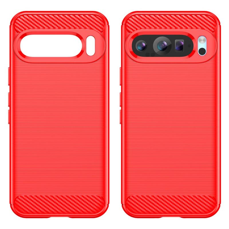 Google Pixel 9/9 Pro Gebürstete TPU Hülle - Karbonfaser - Rot