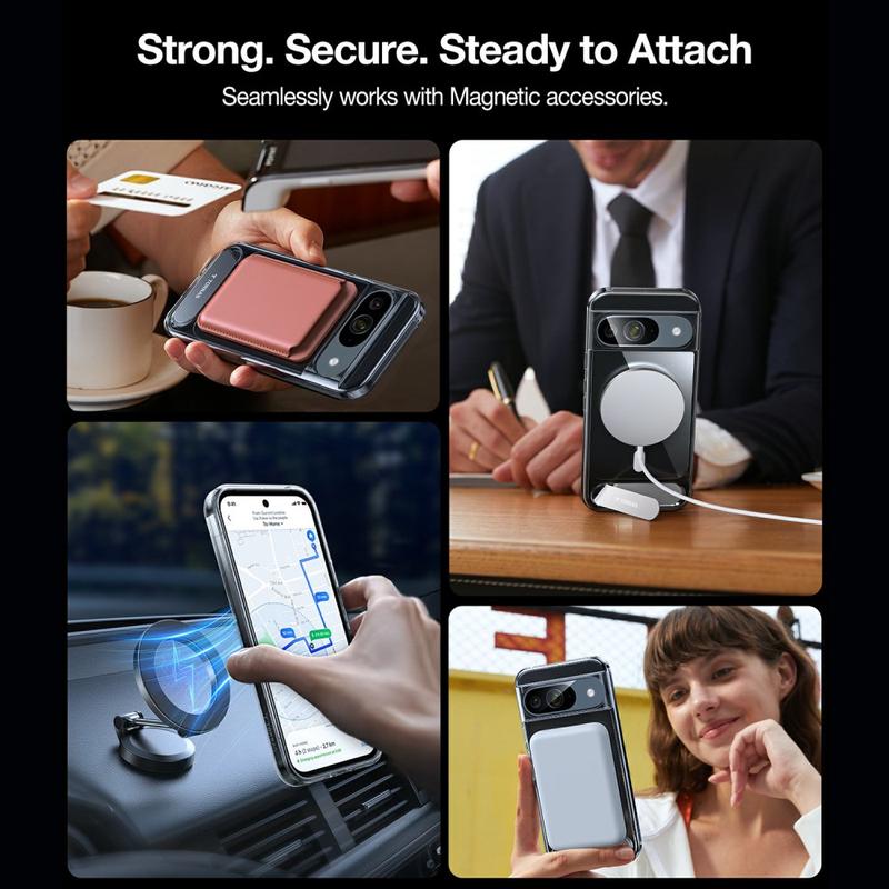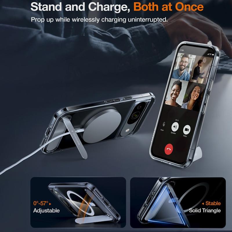 Verwandeln Sie Ihr Google Pixel 9/9 Pro in eine eigene Dockingstation, ohne es in der Tasche zu verstauen. Der TORRAS Pstand kombiniert einen schlanken, faltbaren Stahlständer mit einem magnetischen 18 N-Ring für eine felsenfeste Befestigung an MagSafe-Ladegeräten und Autohalterungen, alles in einer stoßdämpfenden TPU-Schale verpackt.