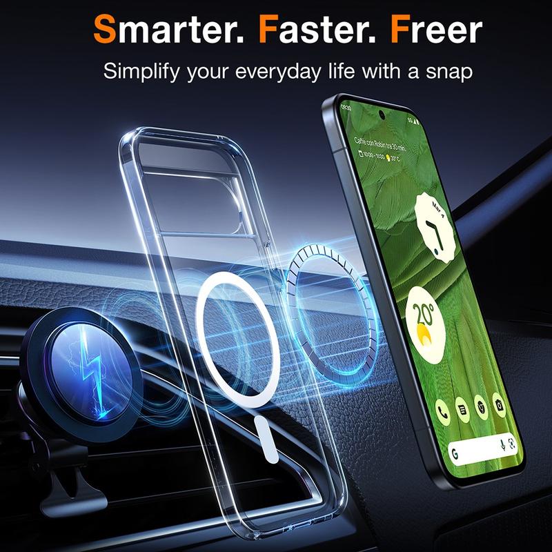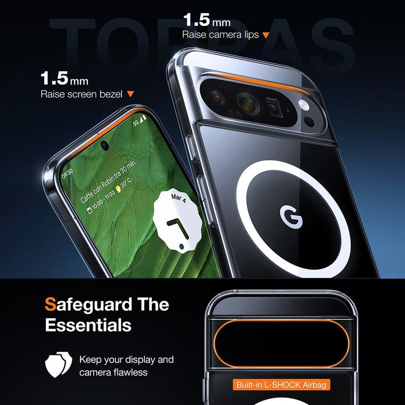 Die Torras MagSafe-kompatible transparente TPU-Hülle für das Google Pixel 9 Pro XL kombiniert Stil, Schutz und Funktionalität und ist damit die perfekte Wahl für Benutzer, die eine schlanke, robuste Hülle wünschen, die das Design ihres Telefons unterstreicht und gleichzeitig MagSafe-Komfort bietet.