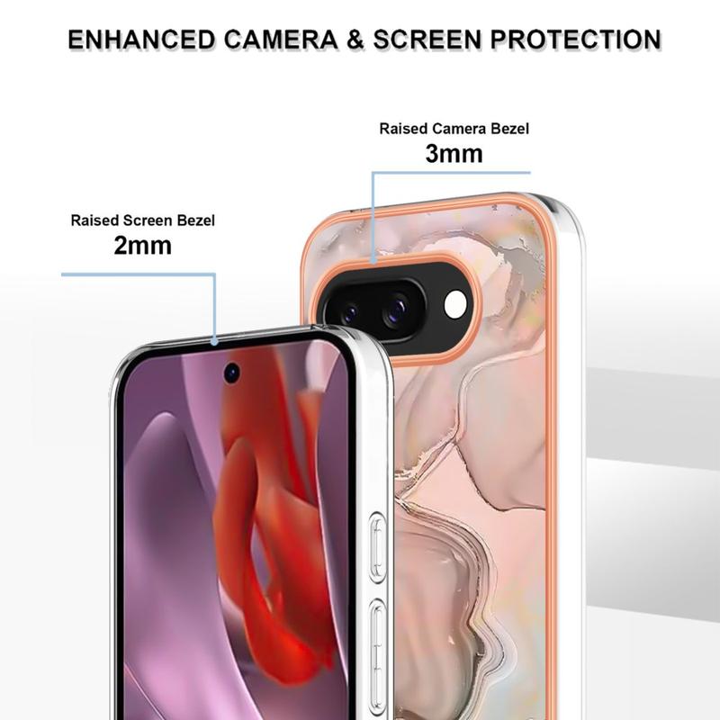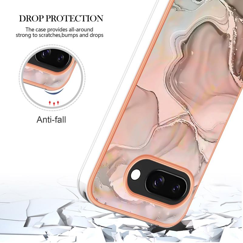 Google Pixel 9a Galvanisierte IMD TPU-Hülle mit Marmormuster - Rosa