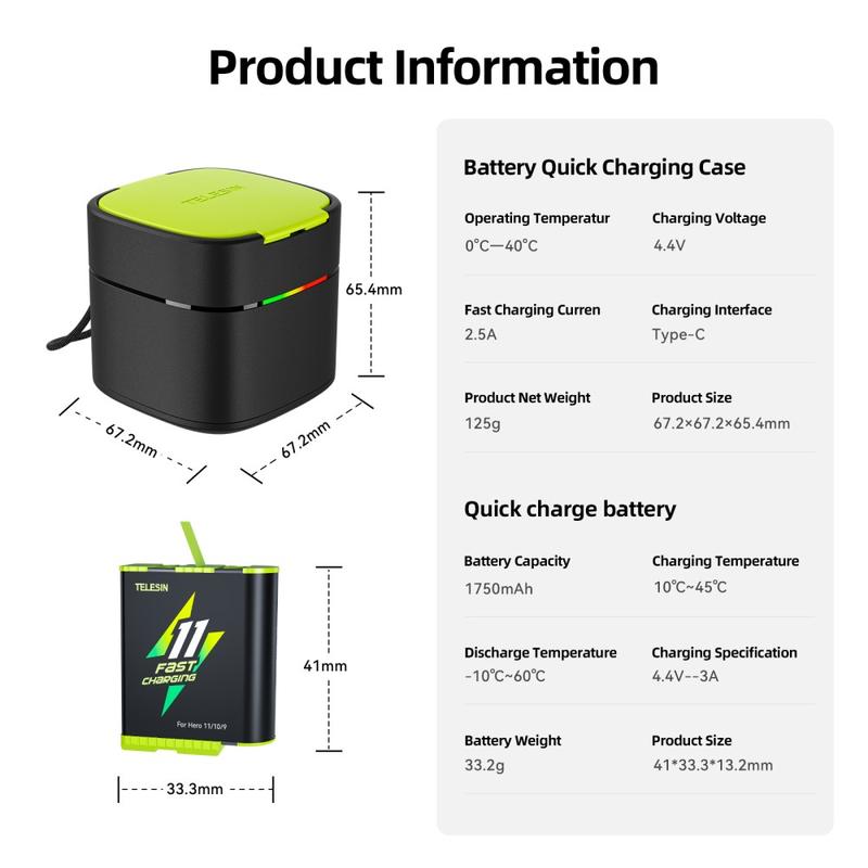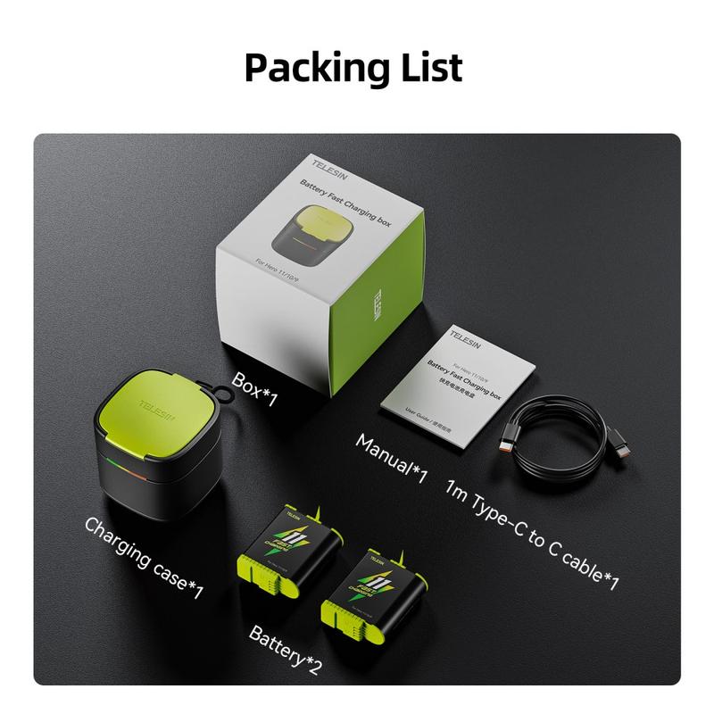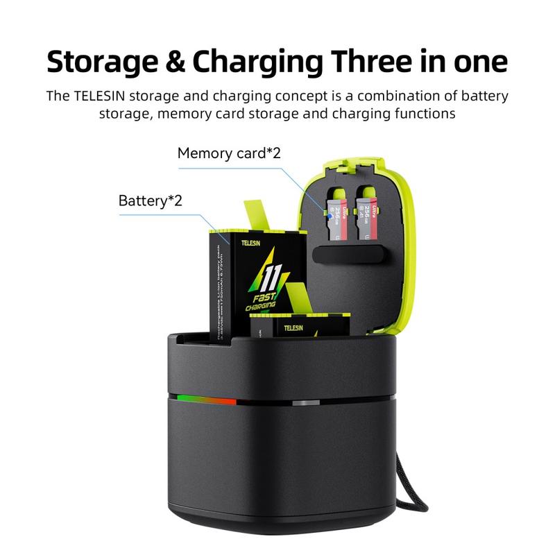 TELESIN GP-FCK-B11 2-Slot Akku-Ladegerät & Aufbewahrungsbox für GoPro Hero 11 - schnelle & zuverlässige Stromversorgungslösung