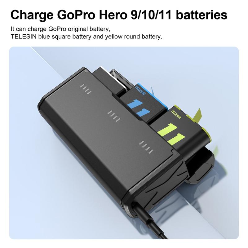 TELESIN GP-HPK-011 3-Slot Akku-Ladegerät & TF-Kartenspeicher für GoPro Hero 9, GoPro Hero 10, GoPro Hero 11