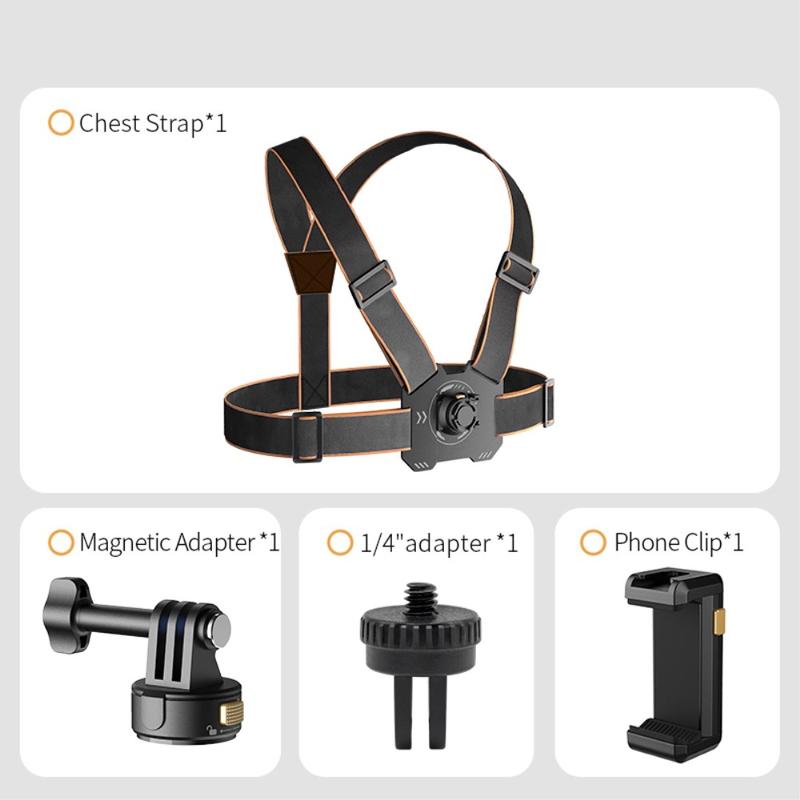 GP-032 Actionkamera-Brustgurt-Set - Magnetische Schnellwechselhalterung, 1/4"-Miniadapter und Handyclip für POV-Aufnahmen