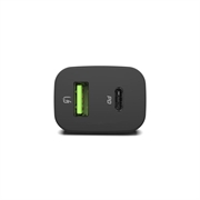 - Zwei Schnellladeanschlüsse: Ausgestattet mit einem USB-C Power Delivery-Anschluss, der bis zu 30 W liefert, und einem USB-A Quick Charge 3.0-Anschluss, der bis zu 18 W liefert und das gleichzeitige Schnellladen von zwei Geräten ermöglicht.
