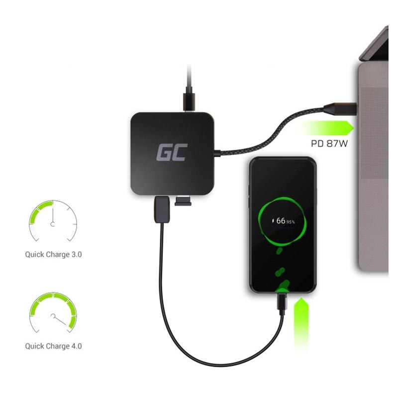 Green Cell 6-in-1 USB-C Multiport-Adapter - Quick Charge 4.0, Power Delivery, Samsung Dex, 4K, 3 x USB 3.0