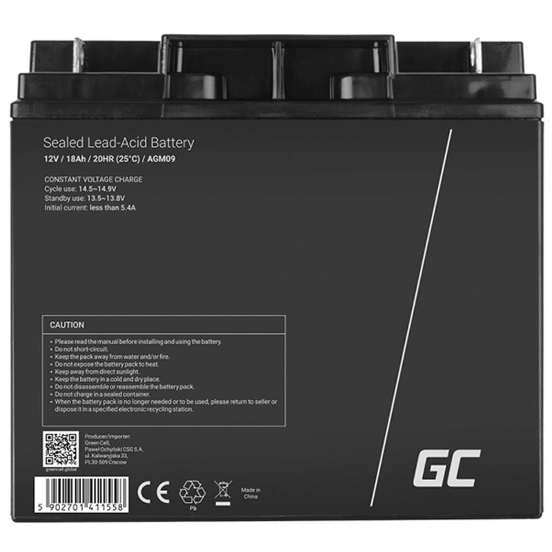 Green Cell AGM VRLA 12V 18Ah wartungsfreie Batterie für Rasenmäher, Scooter, Boot, Rollstuhl