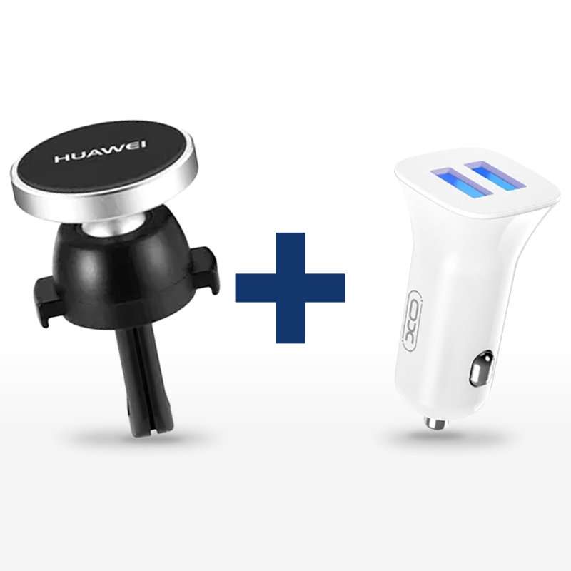 Auto-Essentials-Duo - Huawei Magnetische Telefonhalterung & XO Dual-USB Autoladegerät
