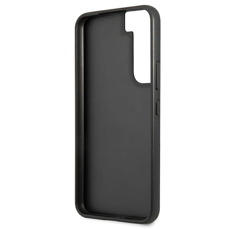 - Die elegante Textur mit dem Guess Logo auf der Rückseite lässt dein Samsung Galaxy S22 5G einzigartig aussehen