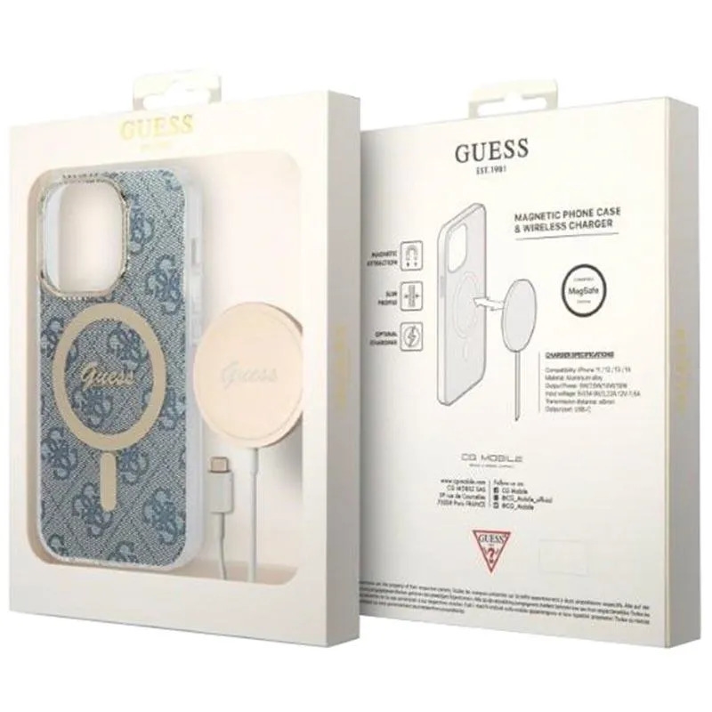 Guess 4G Edition Bundle Pack Hybrid Hülle & Magnetisch Drahtloses Ladegerät für iPhone 14 Pro - 20W