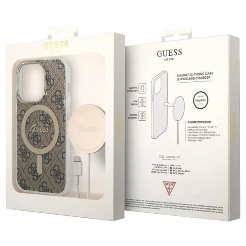 Guess 4G Edition Bundle Pack Hybrid Hülle & Magnetisch Drahtloses Ladegerät für iPhone 14 Pro Max - 20W