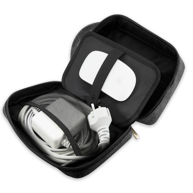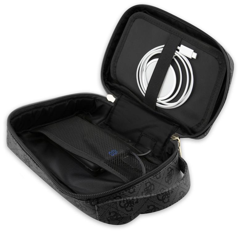 Die Guess Travel Universal Tasche ist der ideale Reisebegleiter für alle, die eine stilvolle und praktische Möglichkeit suchen, ihr gesamtes Zubehör für Telefon, Tablet oder Laptop mitzunehmen. Die aus hochwertigem ECO-Leder gefertigte Tasche verfügt über eine fein strukturierte Oberfläche, die mit dem kultigen Guess-Logo verziert ist. Im Inneren bieten gut durchdachte Fächer ausreichend Platz für Ladegeräte, Powerbanks und Stromkabel. Das Besondere an dieser Tasche ist der USB-A-Ausgang, über den Sie eine Powerbank anschließen und Ihr Handy direkt an der Seite der Tasche aufladen können. Mit ihrem klaren Design und ihrem Sinn für Stil ist diese Tasche perfekt für Reisende, die Wert auf Funktionalität und Mode legen.