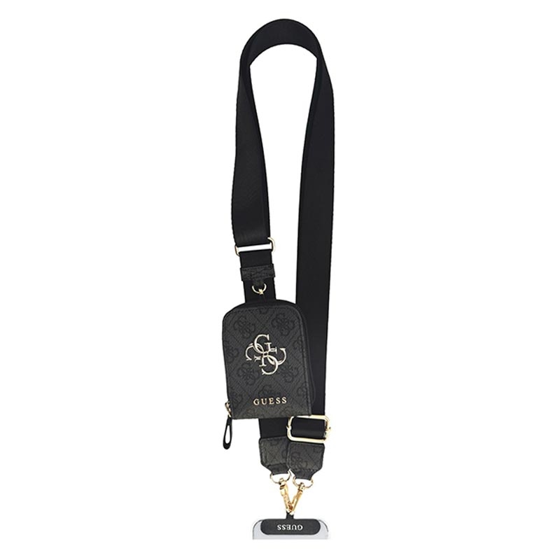 Guess 4G Metal Logo Universal-Umhängetaschen-Handyhalterung mit Zubehörtasche - Schwarz