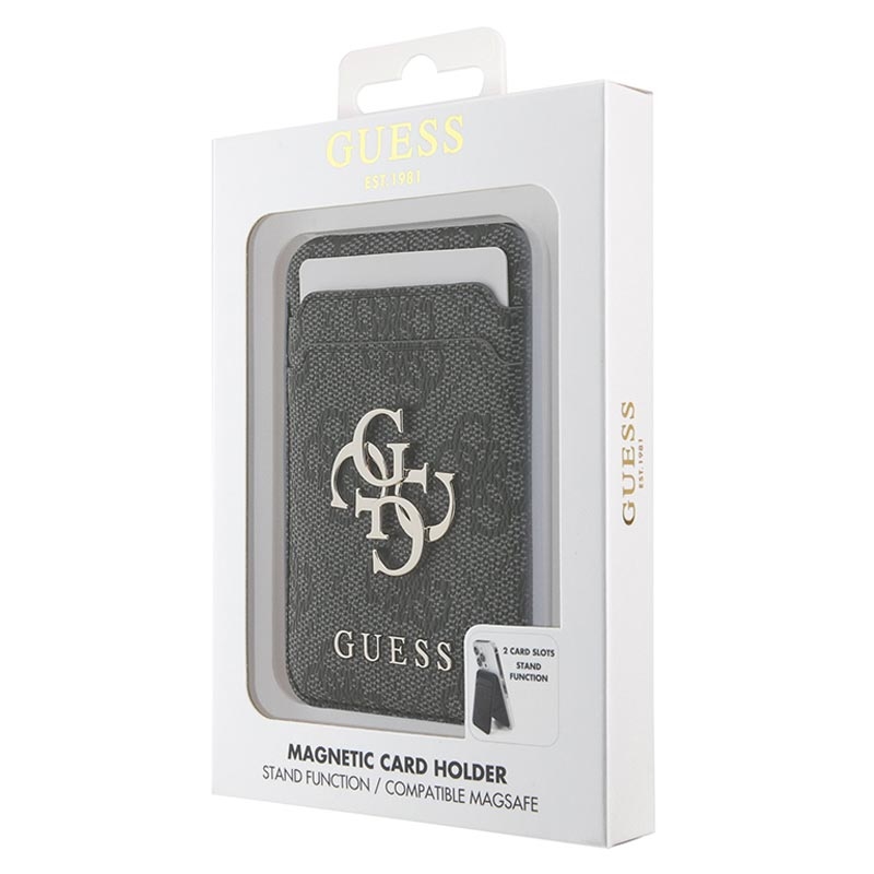 Guess 4G Metall Logo MagSafe Kartenhalter/Geldbörse mit Ständer - Schlanker magnetischer iPhone Kartenhalter