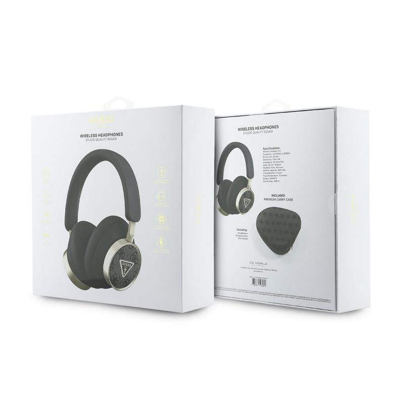 • Guess 4G Triangle Logo ENC Wireless-Kopfhörer - Bluetooth 5.4, ENC Clear Calls, bis zu 45 Stunden Wiedergabe, Premium-Etui