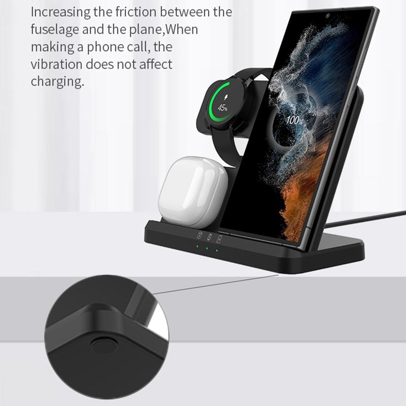 GY-Q10B 3-in-1-Schnellladepad Drahtlose Ladestation für Qi-Standard-Handy / Samsung Galaxy Watch / Kopfhörer - Schwarz