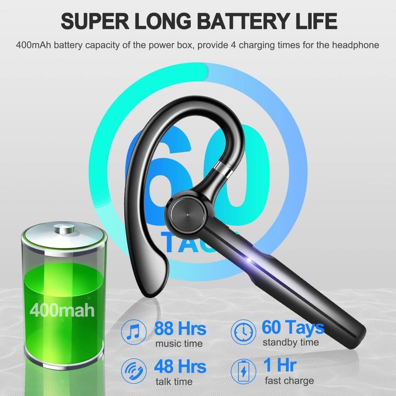 • H03 Bluetooth-Ohrhörer mit drehbarem Ohrbügel und digitalem Display-Etui - Ein-Ohr-Business-Headset, Geräuschunterdrückung mit zwei Mikrofonen, Bluetooth 5.3, IPX5, 88 Stunden Wiedergabezeit