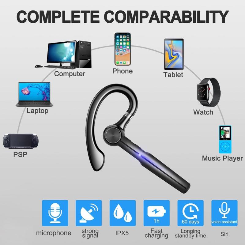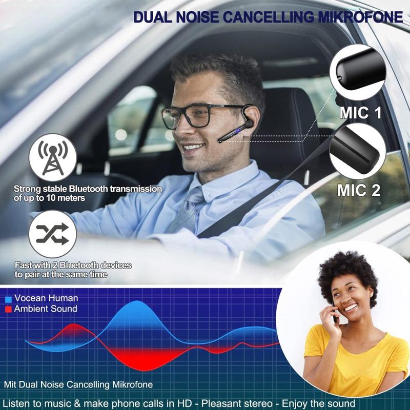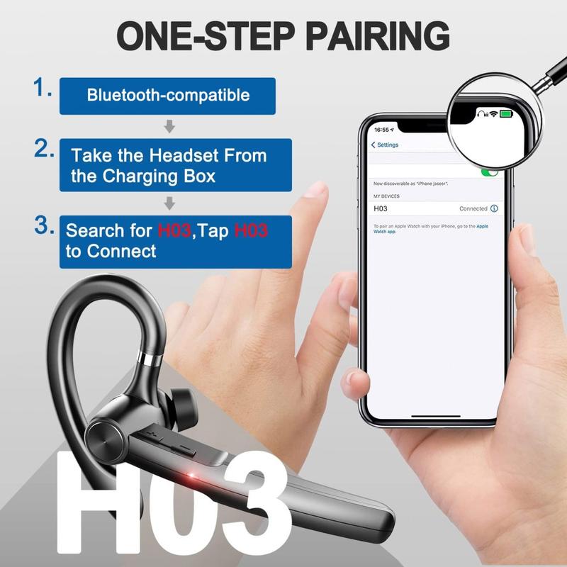 Bleiben Sie den ganzen Tag konzentriert und haben Sie die Hände frei - mit dem einseitigen Business-Bluetooth-Headset H03. Es wurde für lange Telefonate und volle Terminkalender entwickelt und verfügt über ein drehbares Ohrbügel-System (180° Drehung des Ohrbügels + 270° Drehung des Gehäuses), sodass Sie es bequem an beiden Ohren tragen und den Winkel schnell nach Ihren Wünschen einstellen können. Zwei Mikrofone mit Geräuschunterdrückung sorgen für eine klarere Sprachübertragung in Besprechungen, auf dem Weg zur Arbeit und im Büro, während Bluetooth 5.3 eine stabile Verbindung mit einer Reichweite von bis zu 10 m für den zuverlässigen täglichen Gebrauch bietet.