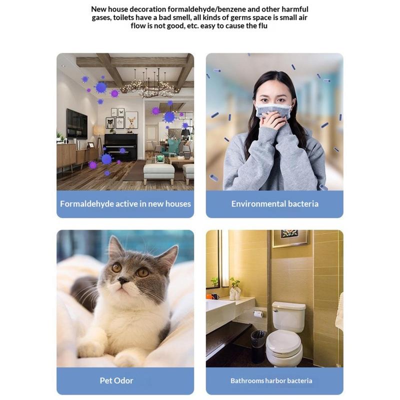 - Verbesserung der Luftqualität auf dem Nachttisch während des Schlafs und bei nächtlicher Nutzung.