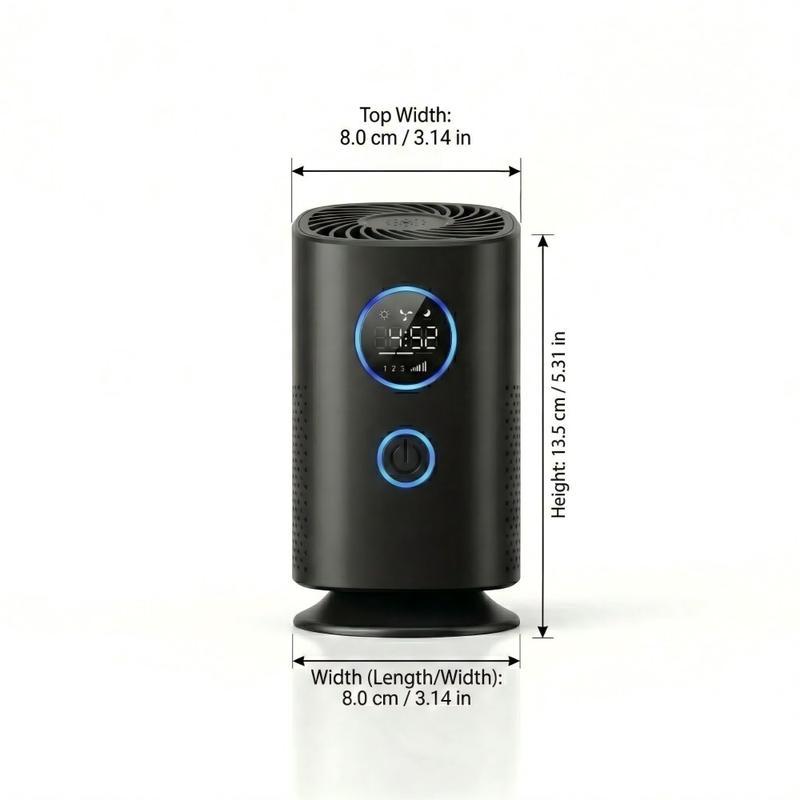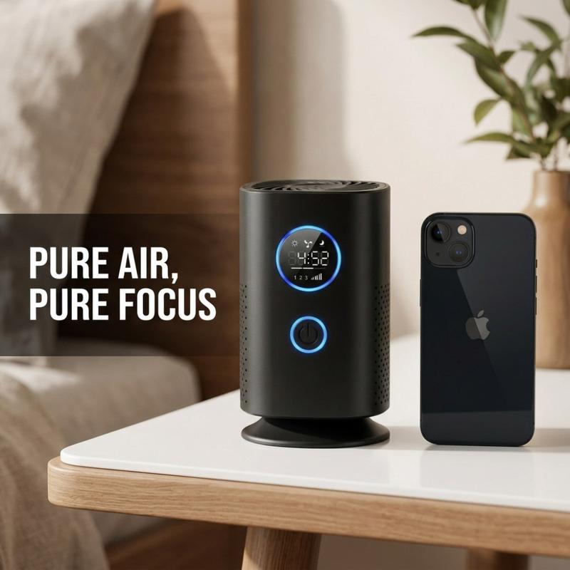 Der Tischluftreiniger H1 wurde für Nutzer entwickelt, die eine kompakte Luftreinigungslösung für kleinere persönliche Bereiche wie Schlafzimmer, Schreibtische, Autos und Heimarbeitsbereiche suchen. Mit Negativ-Ionen-Technologie, einem mehrstufigen Verbundfilter und einem kompakten, wiederaufladbaren Design trägt er zur Verbesserung der täglichen Luftqualität bei und fügt sich dabei nahtlos in moderne Räume ein. Seine schwarze Oberfläche und das OLED-Display verleihen ihm ein klares, praktisches Aussehen, das sich gut auf einem Nachttisch, einem Schreibtisch, einem Regal oder der Mittelkonsole im Auto macht.