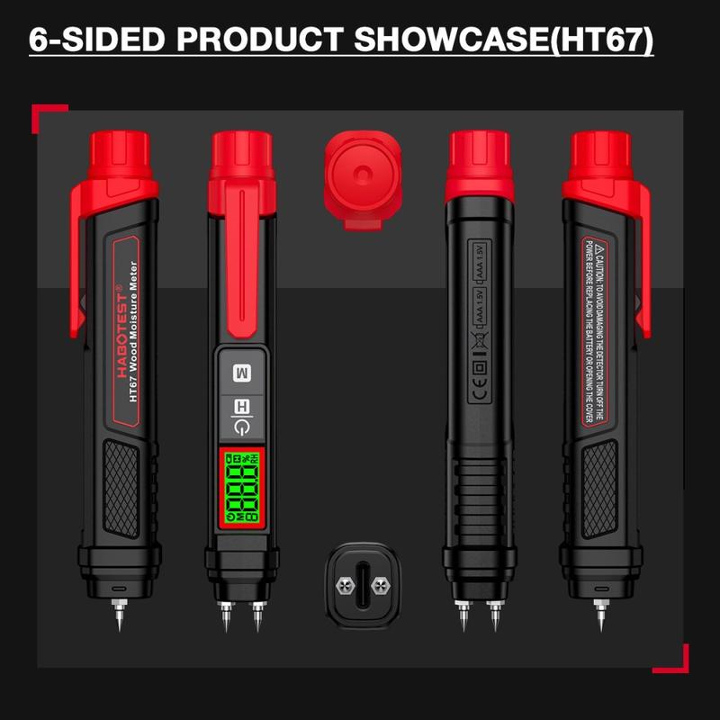 Das digitale Feuchtigkeitsmessgerät HABOTEST HT67 ist ein praktisches Messgerät, das für schnelle und zuverlässige Feuchtigkeitsmessungen in Holz, Wänden, Zement, Ziegeln und anderen gängigen Baumaterialien entwickelt wurde. Ob Sie Brennholz prüfen, Innenwände untersuchen, Renovierungsarbeiten überwachen oder Bauoberflächen testen - dieses kompakte Messgerät hilft Ihnen dabei, den Feuchtigkeitsgehalt schnell und präzise zu ermitteln.