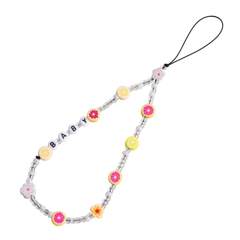 Handy-Anhänger mit Fruchtperlen / Handgelenkband - 22cm - Baby