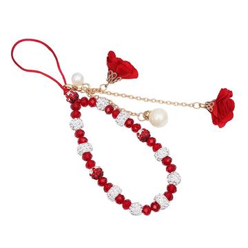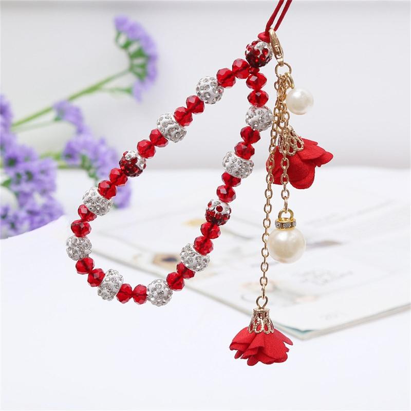 Handy-Anhänger mit Rosenblüten-Charms und Kristallperlen - Rot