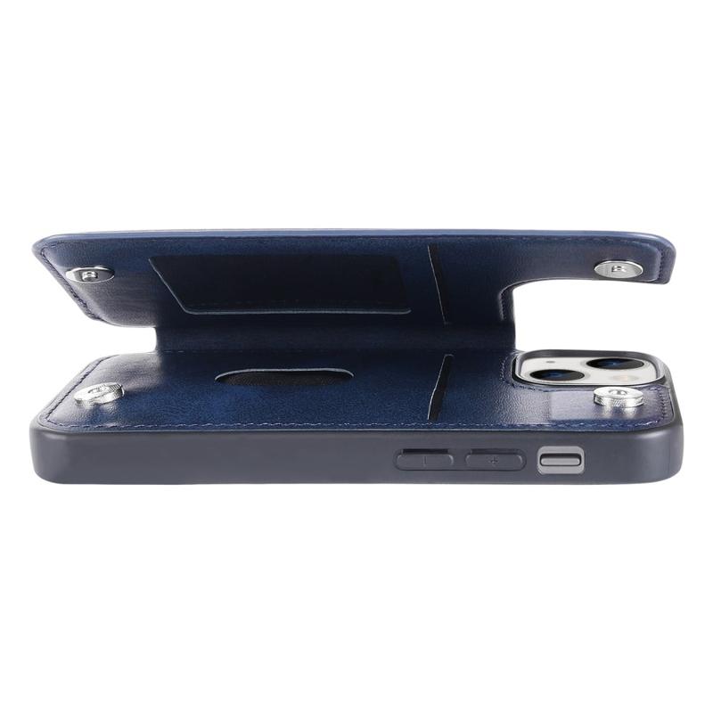 • HANMAN Mika Series For iPhone 14 Magnetic Closure Card Slots Case PU Leather Coated TPU Anti-drop Phone Cover PU leather coated TPU phone case, wear-resistant and anti-scratch Back card slots for carrying your essential credit cards/ID card Magnetic buttons closure keeps inner cards safe Easy access to charging ports, speakers and other functional interfaces Keep the backside of the phone from scratch and bump Hassle-free install and easy removal