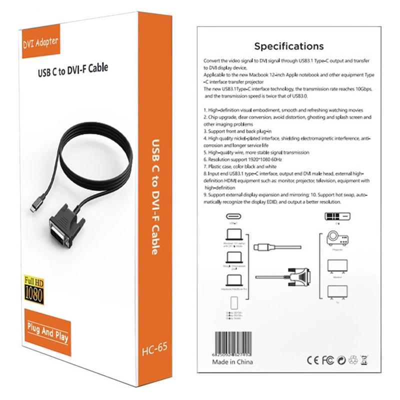 HC-65 USB-C-zu-DVI-Kabel 1.9m - 1080p Full HD-Videoadapter für MacBook, Laptop, Monitor und Projektor