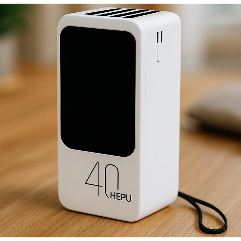 Hepu XL HP210 40000mAh Power Bank - Multi-Port Schnellladung mit integrierten USB-C/Lightning/USB-A/MicroUSB Kabeln und Ladeanzeige