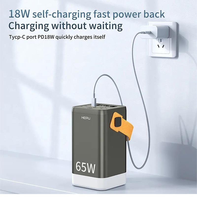 • Hepu XXL HP211 60000mAh Powerbank - Tragbares Ladegerät mit hoher Kapazität mit Dual USB-C PD, DC Port & 4 USB-A Ausgängen - 65W