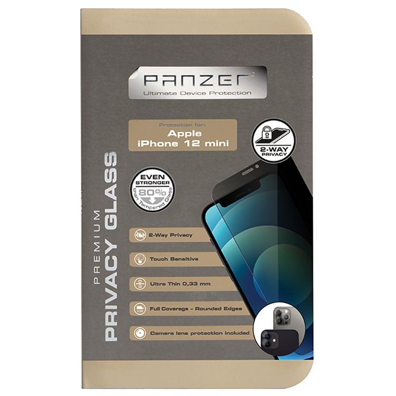 Panzer Premium Full-Fit Privacy Displayschutzfolie aus Panzerglas für iPhone 12 Mini - 9H, 0.6mm