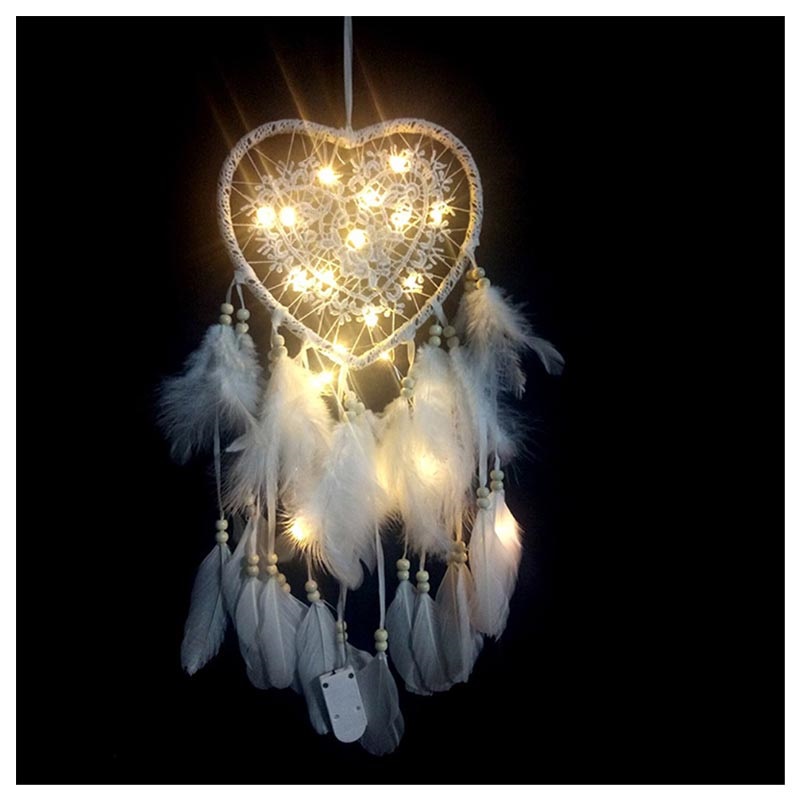 Mit seinem warmen, gemütlichen Lichteffekt in der Nacht, wird dieser herzförmige Traumfänger eine perfekte und entspannende Atmosphäre in Ihrem Wohnzimmer, Schlafzimmer oder Flur schaffen.
