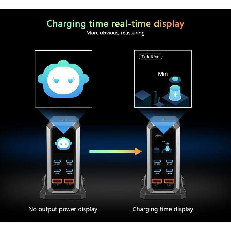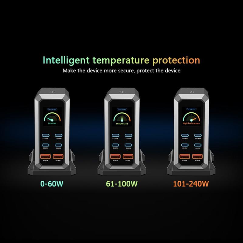 HHW 240W GaN 6-Port USB-C Ladestation - PD3.1 Schnellladehub mit Echtzeit-Farbdisplay