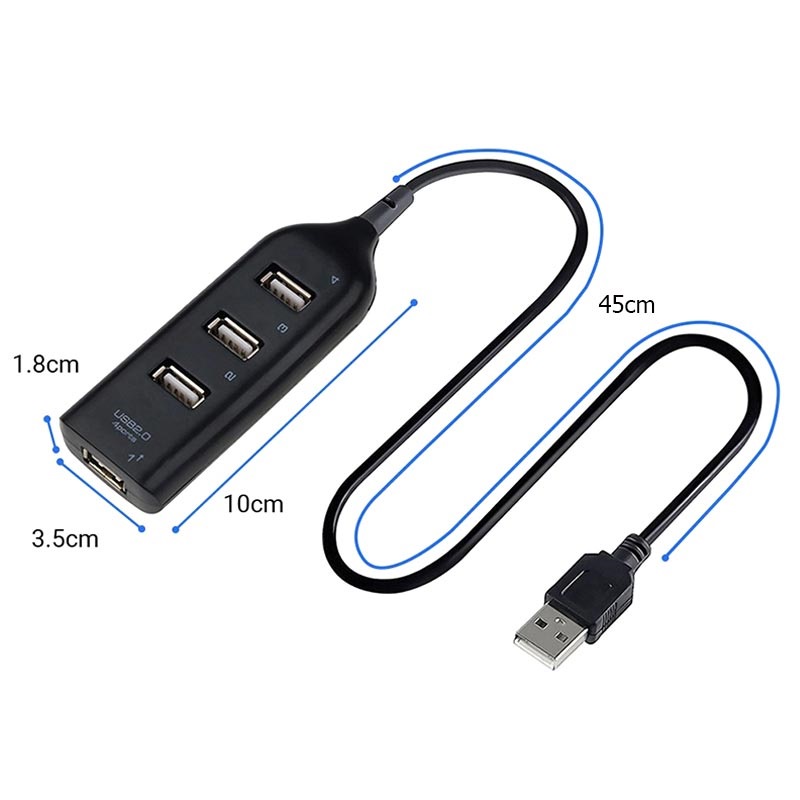 High-Speed 4-Port USB Hub 2.0 mit 45cm Kabel - Laden & Synchronisieren, 480Mbps