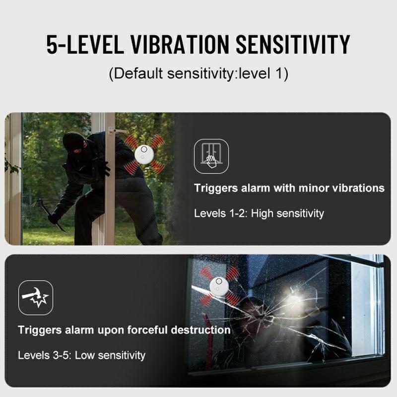 Sichern Sie Ihr Haus, Büro oder Geschäft mit diesem hochempfindlichen Tür- und Fensteralarm, der Vibrationen, Stöße oder Glasbruch erkennt. Mit einer einstellbaren Sirene von 130dB, anpassbaren Empfindlichkeitsstufen und einer einfachen, werkzeuglosen Installation bietet er eine zuverlässige und erschwingliche Sicherheitslösung gegen Eindringlinge.